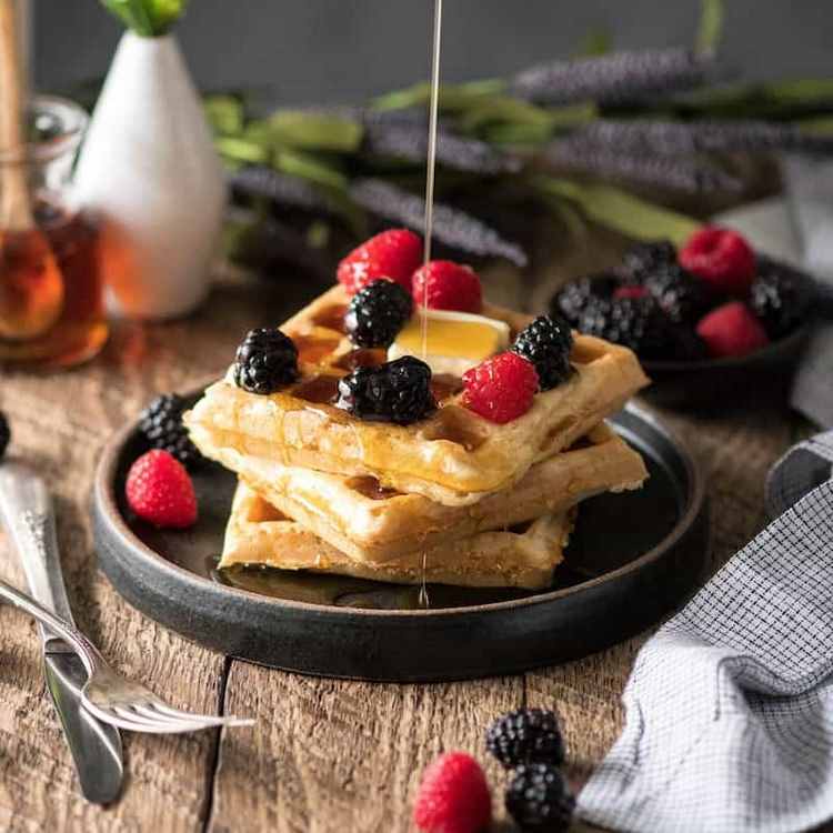 - Serve waffles with maple syrup or any other toppings that you like.