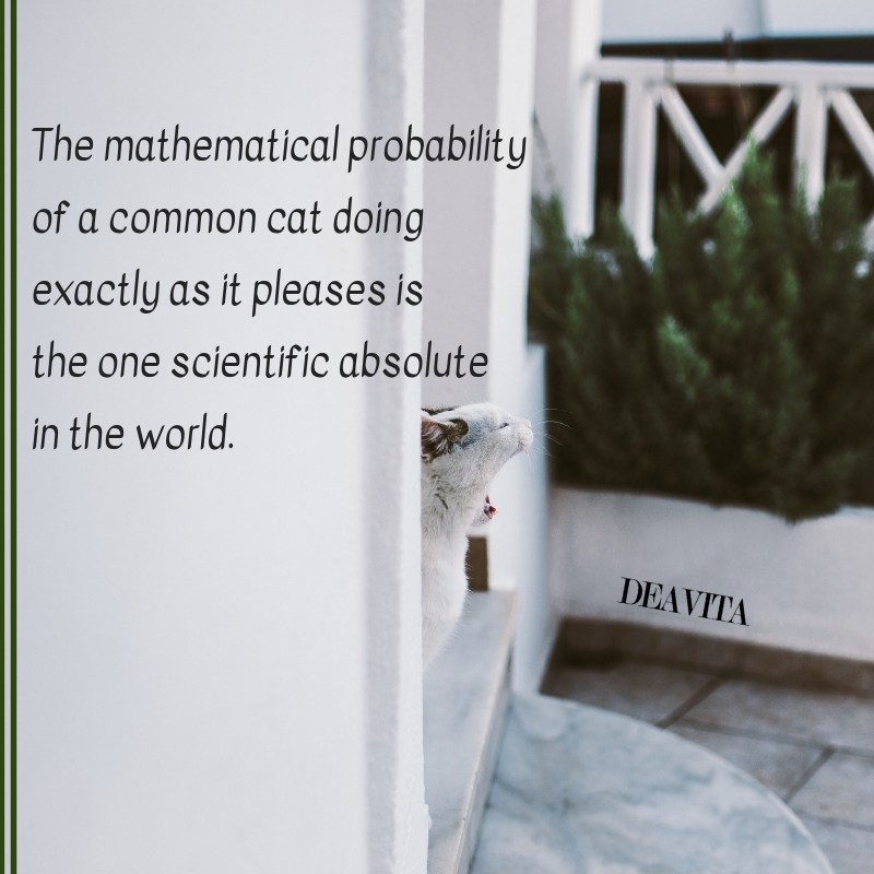 The mathematical probability of a common cat doing exactly as it pleases is the one scientific absolute in the world.