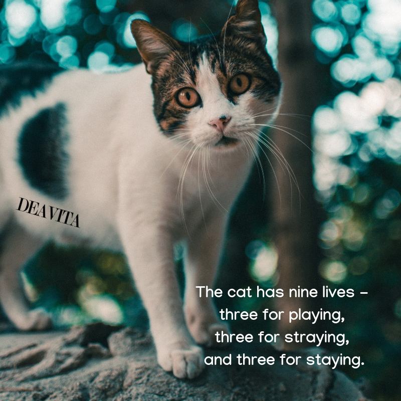 The cat has nine lives – three for playing, three for straying, and three for staying.