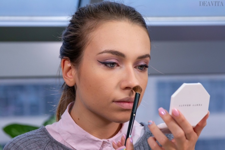 Apply primer to the T-zone (forehead, nose, chin) with circular movements. As a result, the pores are filled and a uniform look of the complexion is achieved.