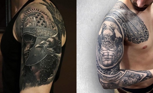 For thousands of years men were warriors and it is not a surprise that this type of tattoos is enjoying such a great popularity in modern times. Men choose it for different reasons and for every individual it has a special meaning. To some, the image is just a super cool body decoration, for others it symbolizes their masculinity, readiness to fight for their ideals or as a way of expressing their life principles. There are men who use the image as a protective tool, as an armor for the soul, as a shield from the hardships of life, etc.