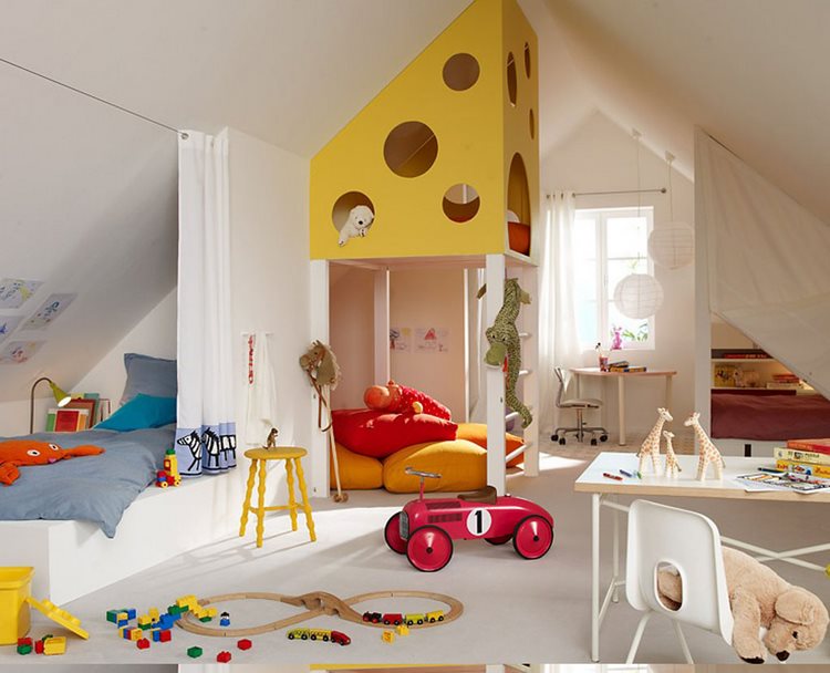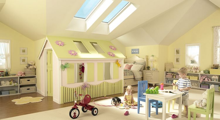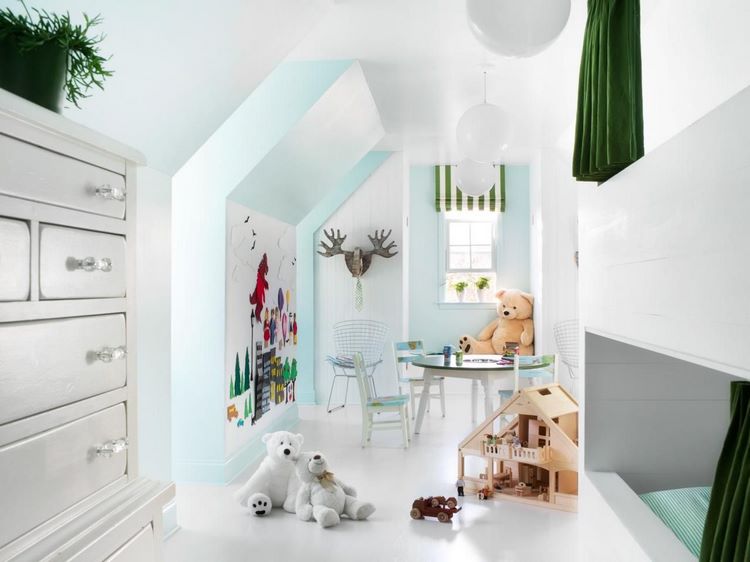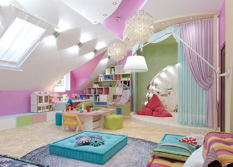 The design of children’s rooms is always different from the design of the rest of the rooms in the house. The brighter the room, the brighter the mood. It is very important not to lose the feeling of moderation, and to keep the harmony and overall style. The color scheme will depend, first of all, on taste preferences, the nature of the child, as well as on the attic lighting. If the child is active, saturated colors should be avoided. Pastel, calm shades have a soothing effect. Another consideration is the age of the child and whether you decorate a room for a boy or a girl. Here are some tips for you that will help you in taking decisions.