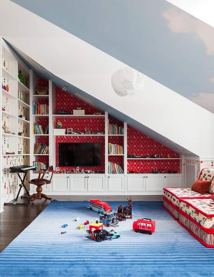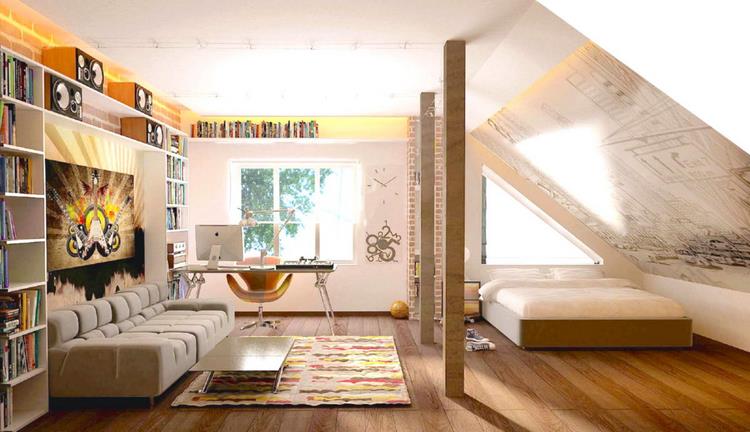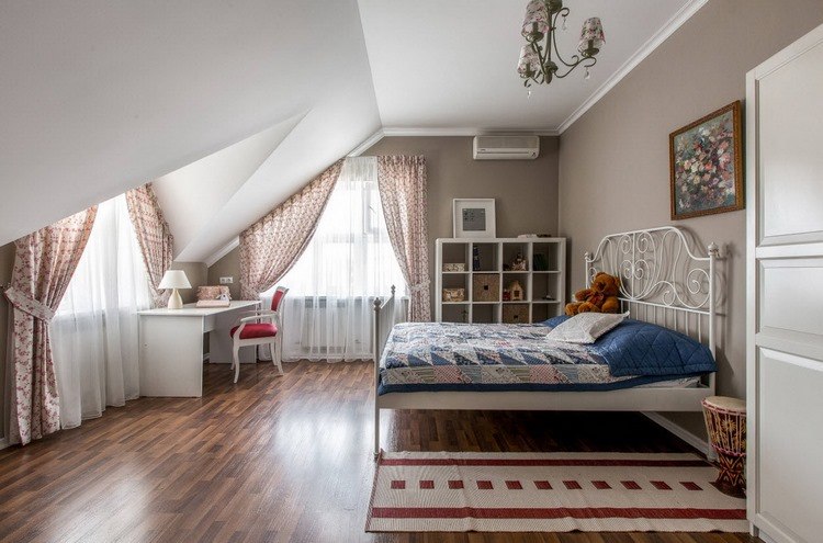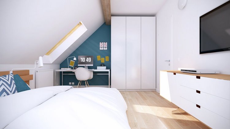Sloped ceilings are a challenge when planning the layout of an attic room. Successful attic conversion ideas should provide a feeling of security and comfort. The space should be comfortable and multi-functional. With a competent layout, all the shortcomings of the attic can be turned into advantages. Usually a child’s room consists of 3 zones – a play are, zone for learning and a sleeping area. The zone for learning should be located next to the source of natural light and equipped with a sufficient number of lamps so that the child can read in the evening. The sleeping area can be located on the opposite side or near it. The playing area is usually located in the center of the room, as children need free space for games.