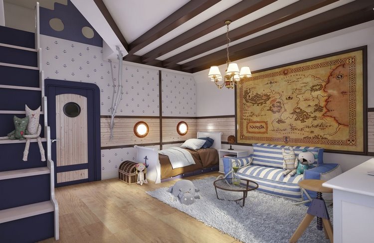 Shabby chic, French country and Provence are suitable for girls. Such interiors are light, charming and romantic. Industrial style is more appropriate for teenagers than for small children. Exposed brick walls, panoramic windows, metal and wood will be really appealing to young men.