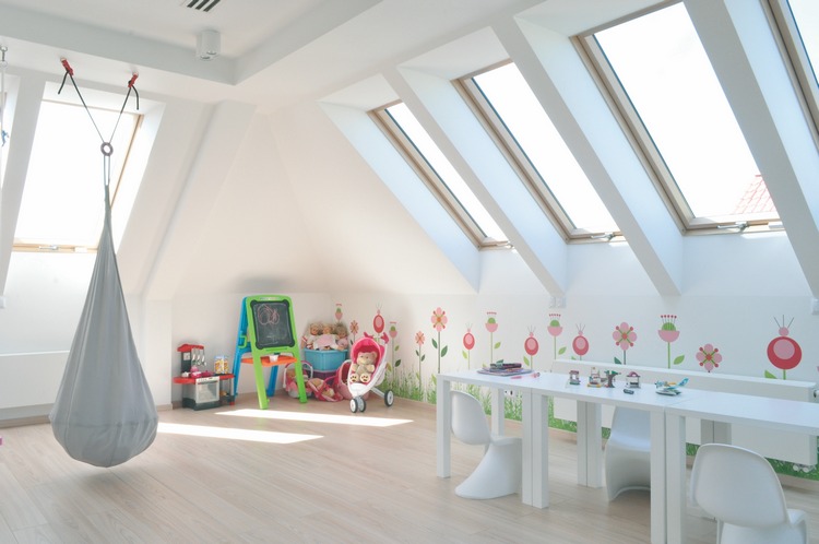 One if the most popular attic conversion ideas is to transform the unused space into a bedroom or playroom for the children. An attic nursery always looks cozy and atmospheric, because the sloping ceilings give freedom to creativity. In such a room it is always bright, fresh and spacious thanks to the roof windows.