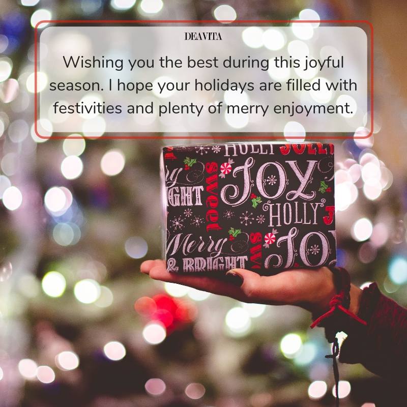 Wishing you the best during this joyful season. I hope your holidays are filled with festivities and plenty of merry enjoyment.