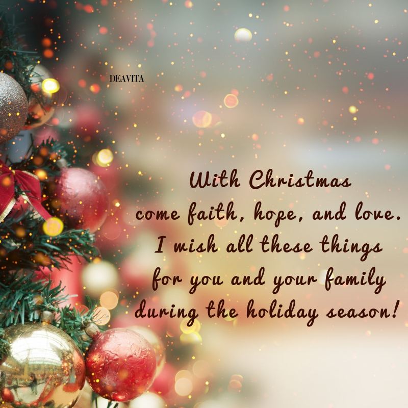 With Christmas come faith, hope, and love. I wish all these things for you and your family during the holiday season!