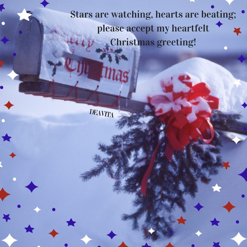 Stars are watching, hearts are beating; please accept my heartfelt Christmas greeting!