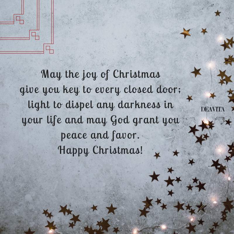 May the joy of Christmas give you key to every closed door; light to dispel any darkness in your life and may God grant you peace and favor. Happy Christmas!