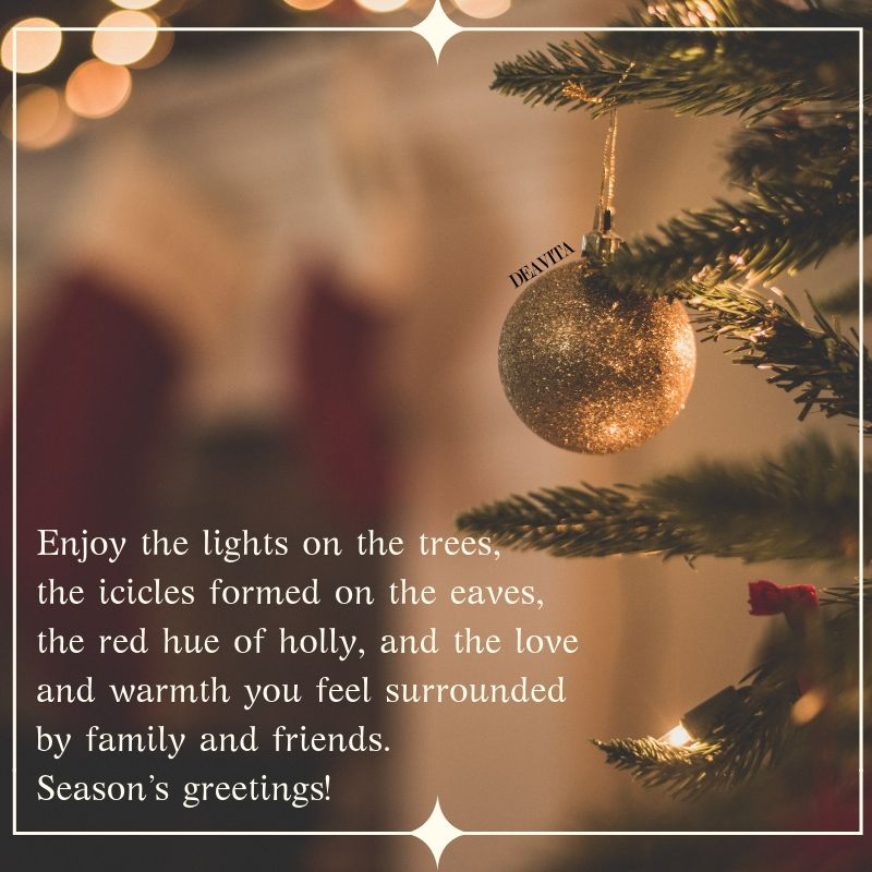 Enjoy the lights on the trees, the icicles formed on the eaves, the red hue of holly, and the love and warmth you feel surrounded by family and friends. Season’s greetings!