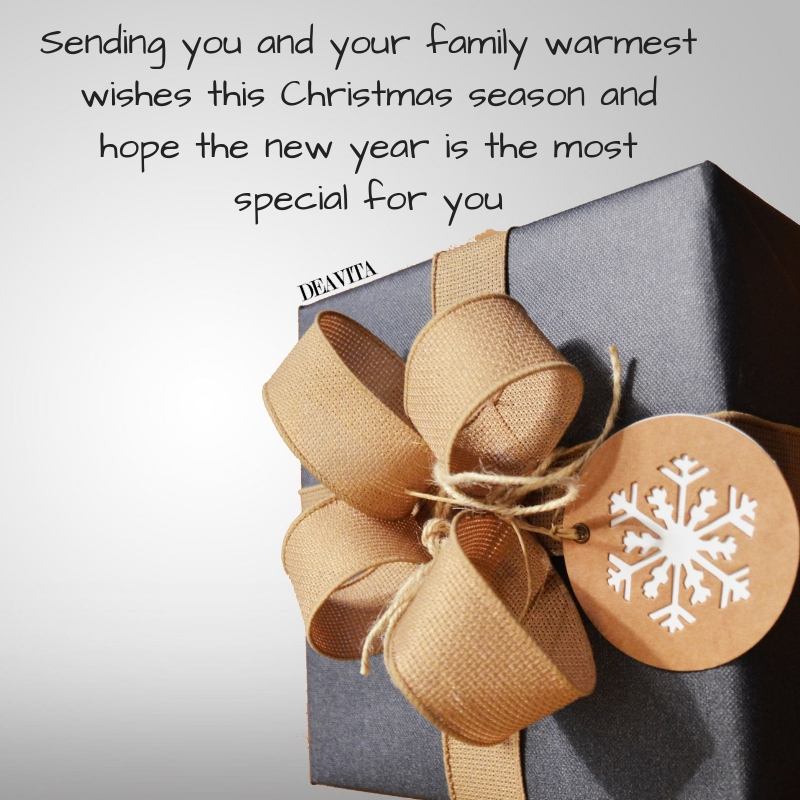 Sending you and your family warmest wishes this Christmas season and hope the new year is the most special for you