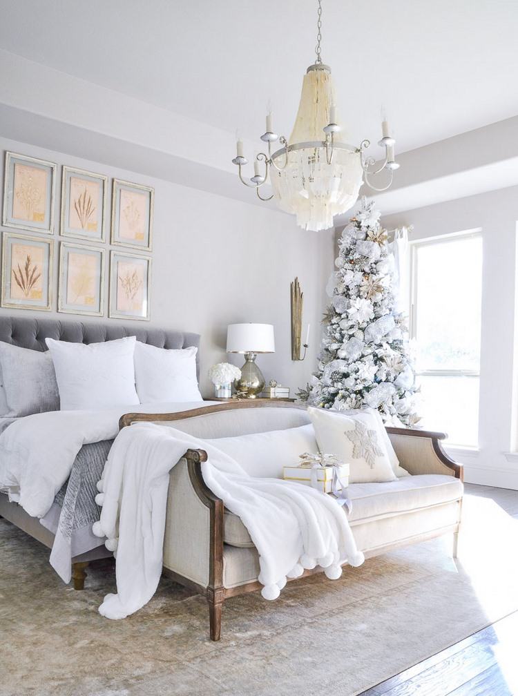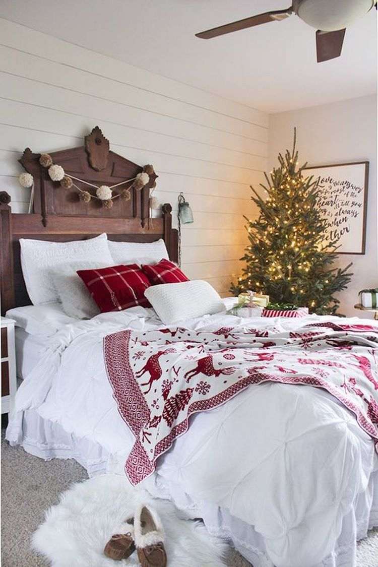 Find some of the best Christmas bedroom decor ideas in the gallery. We selected them as an inspiration for you as each one of them creates a fantastic atmosphere. The bedroom is the place where we fall asleep and wake up and it should cheer us up. How to decorate your bedroom for Christmas so that it is beautiful, welcoming and attractive? When weather becomes cold, festive surroundings create a feeling of comfort. That is why when decorating the house for the holidays we must not forget about the bedroom and children’s rooms. After all, it is the morning that sets the mood for the whole day, right?