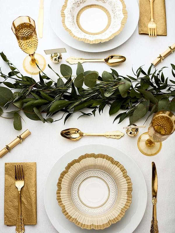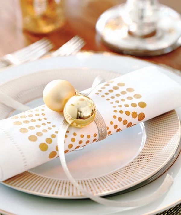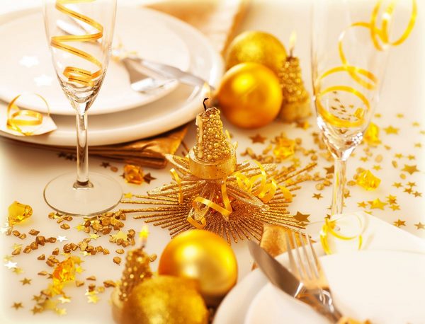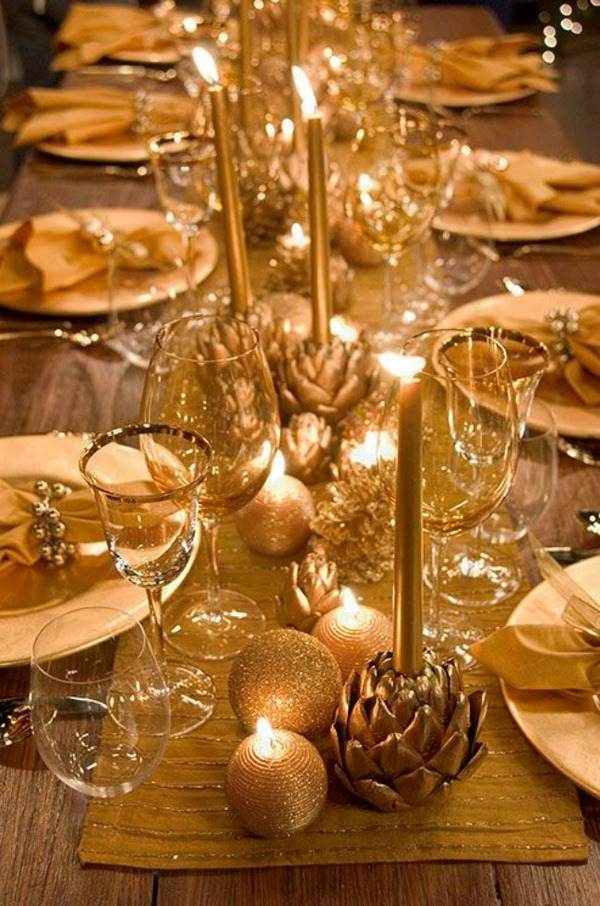 Gold color is attracting and enchanting and even a small amount can transform an ordinary decoration into something fabulous. It is easy to cross the line of good taste so try not to use massive items. For example, instead of using a gold sequin tablecloth, use a runner. It will add just the right amount of festive glitter to the table.