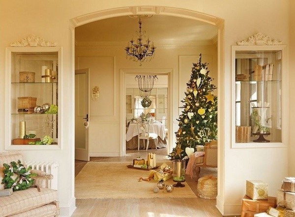 For thousands of years gold has been associated with luxury and wealth. Golden color in the interior was used to decorate castles and palaces. The incredible magic of this color attracts attention with its brilliance and enchanting luxury. The color is definitely one of the favorites for Christmas, and immediately lifts the mood. It is very elegant and gives a luxurious look to the whole room. Gold is perfect for decorating the Christmas tree and for setting the table on of Christmas Eve and, why not, also on New Year’s Eve!