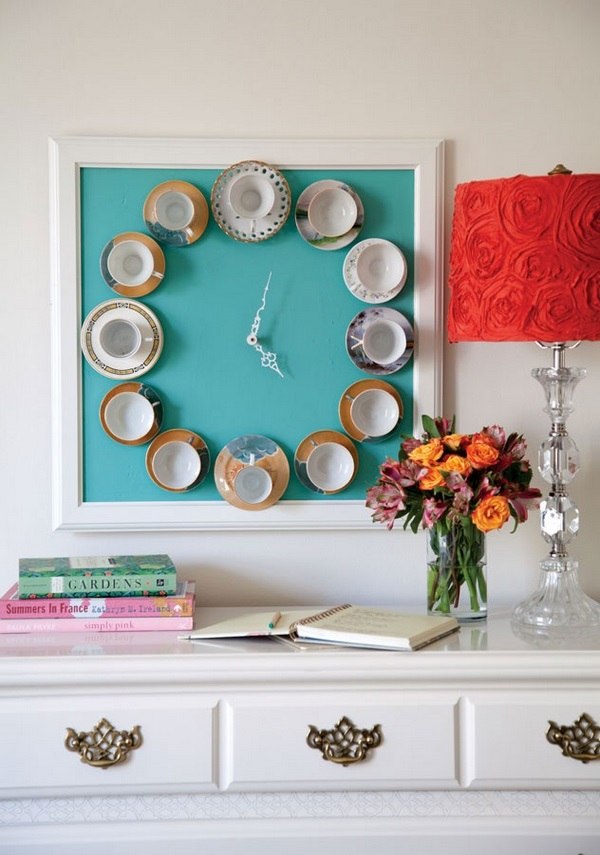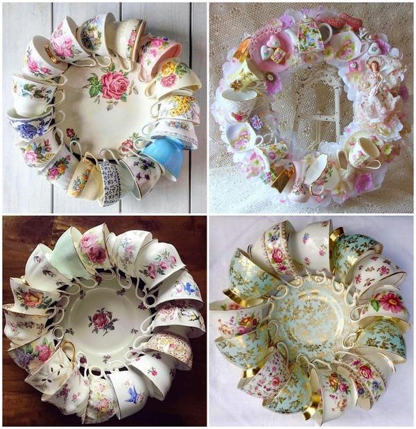 Are you planning a tea party? What could be a better decoration for your elegant event than a fantastic teacup wreath! It is not necessary to have cups from one set. Take different ones, it will be even more interesting.