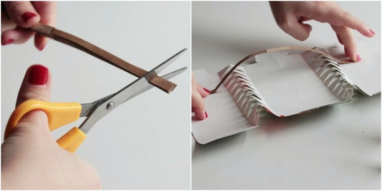 Place your toilet paper roll in the middle of the brown cardboard paper just between the cut diamonds. Next, make the snap go through the cardboard roll. Fill the cavity with surprise gifts of your choice.