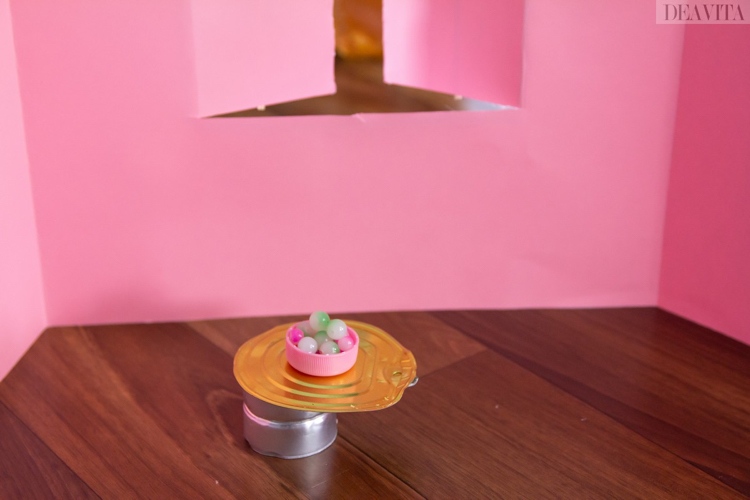 DIY Dollhouse furniture ideas – Coffee table made of tea candles and can lid
