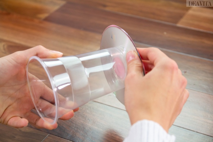 First glue the two tea candles together and let it dry. They will form the pillar on which you will attach the tabletop later.