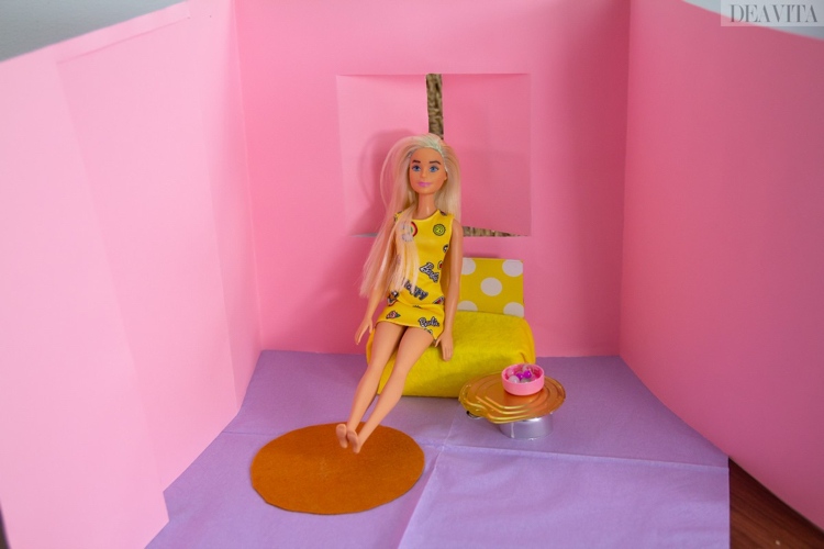 Glue a piece of pink felt (it will serve as a bed sheet for Barbie) on the upper side.