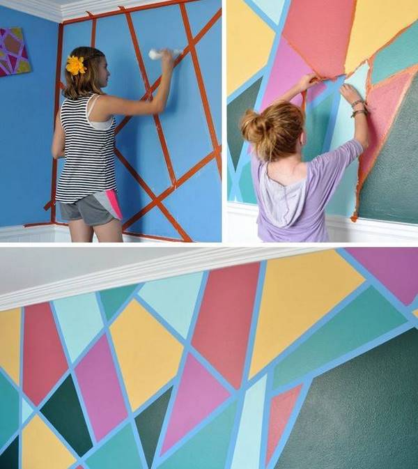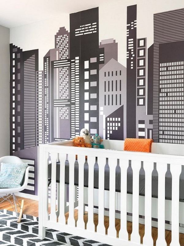 Using stencils is another easy wall decorating technique which allows you to create a unique design in the room. You can create a stylized cityscape with rectangles, a mountain view with different sized triangles or just a free style pattern. Remember, that children love to be involved in such activities and would be more than pleased to help you and take part in the decoration of their room. If you decorate a teenager’s room, make sure you discussed the pattern, colors, size of shapes, etc.
