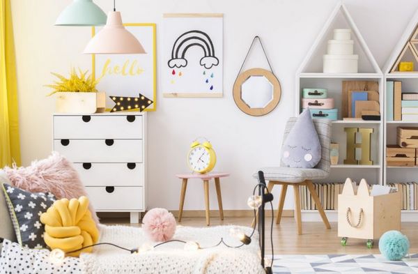 You can introduce geometric decor in kids’ rooms in different ways – as wall decor, in textile, furniture, etc. Let’s look at the different interior design and decorating techniques.