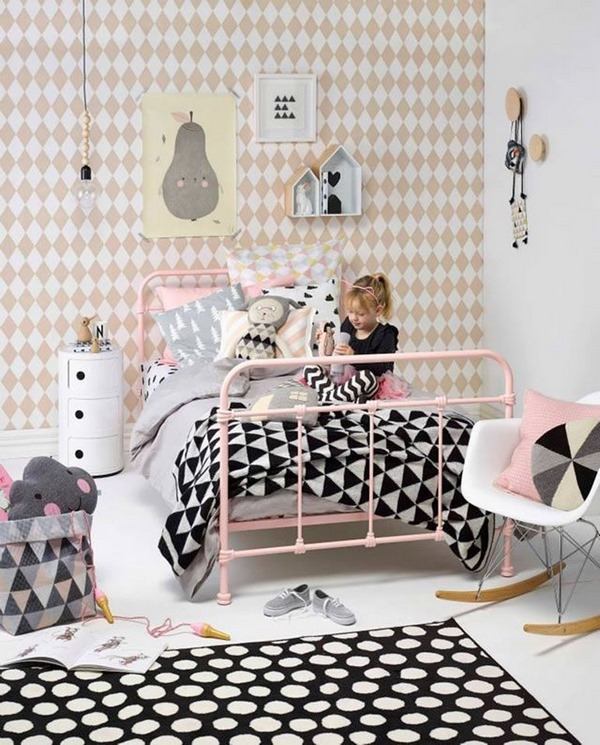 Geometric wall decoration ideas are widely popular for nursery rooms and for the rooms of children at pre-school age as well as teenagers. For example, a pronounced geometric pattern can decorate one wall in the room if you want to create a focal point. You can use an interesting wallpaper or paint the figures by yourself as a DIY project. You will need paper tape to set the pattern and wall paint. The choice of colors will depend on the overall style of the room. For example, discreet pastel colors and calm shades are typical for Montessori nursery rooms. For girls’ rooms pastel shades, pink, purple, beige and light gray are undoubtedly the most popular colors. For an extra touch of glamour you can add geometric decoration in gold. Blue and mint green in combination with gray and beige are great for boys.