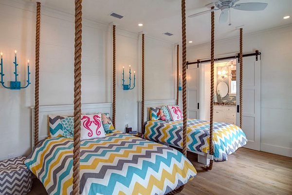 Triangles are often associated with anxiety and danger due to the sharp angles. Experts do not recommend using them as a decor in kids; rooms but you can combine them with round and oval shapes which will balance the sharpness.
