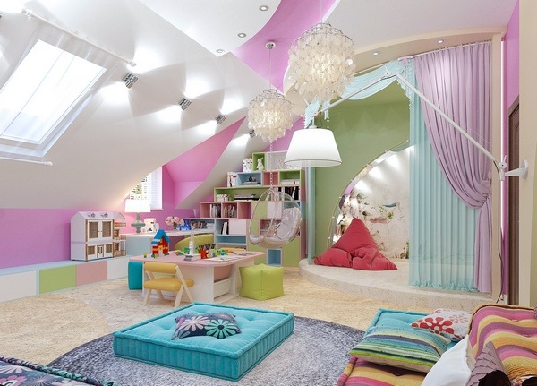 If you plan the interior design for teenagers or young people, then clearer and sharper lines are possible, as well as a rich palette. Dynamic corner shapes that symbolize speed and courage are quite ok. You can play with color combinations – monochrome background and delicate patterns or sharp contrasts, for example, black and white.