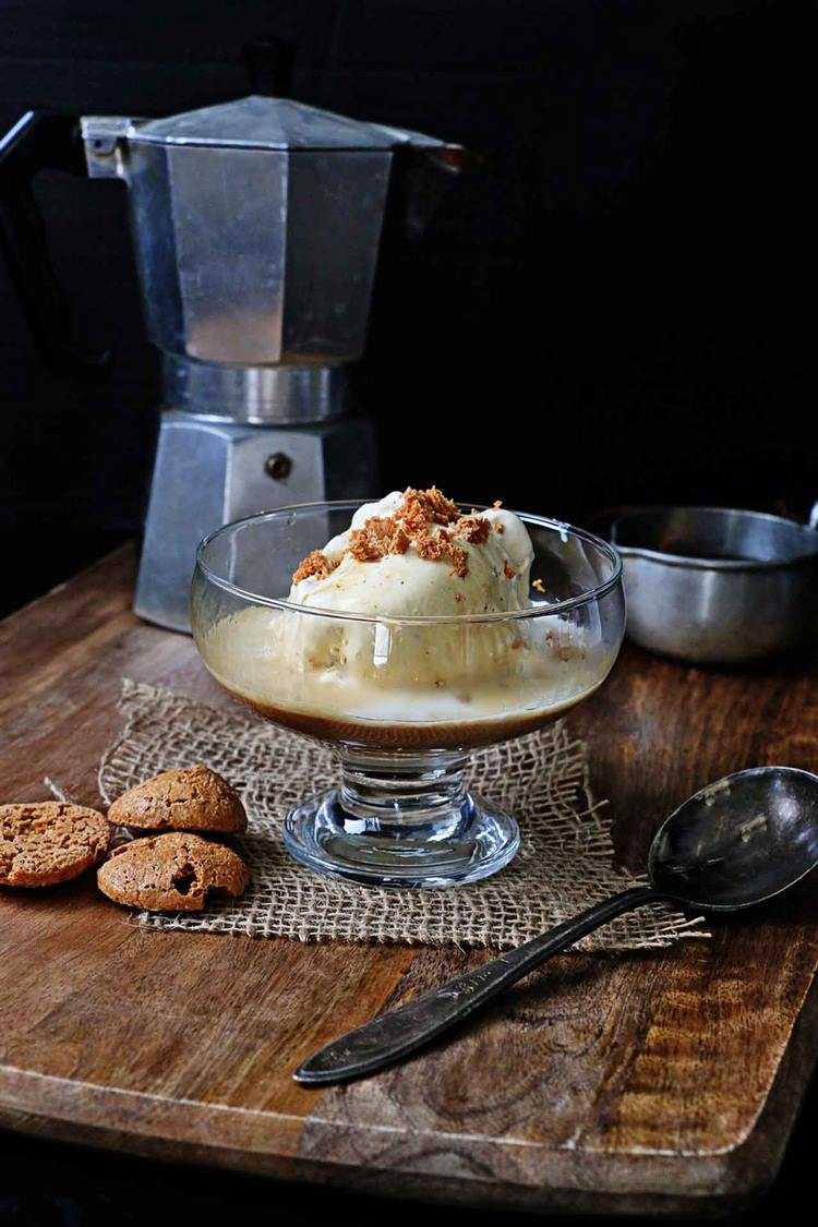 Pour the espresso over the ice cream and serve immediately. Optionally, you can serve the espresso on the side and let everyone pour it by themselves. However, do not forget that Affogato is a combination of hot and cold, so do not let espresso sit and get cold.