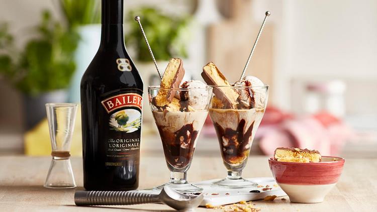 Add Irish whiskey and Bailey’s Irish cream in an Irish Coffee mug.