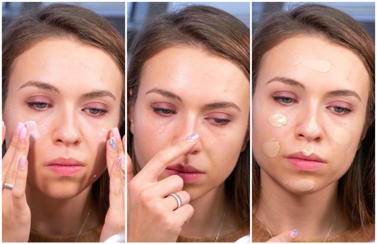 Apply the moisturizer on the entire face. Apply the foundation to the center of the face and then dab it evenly with a sponge.