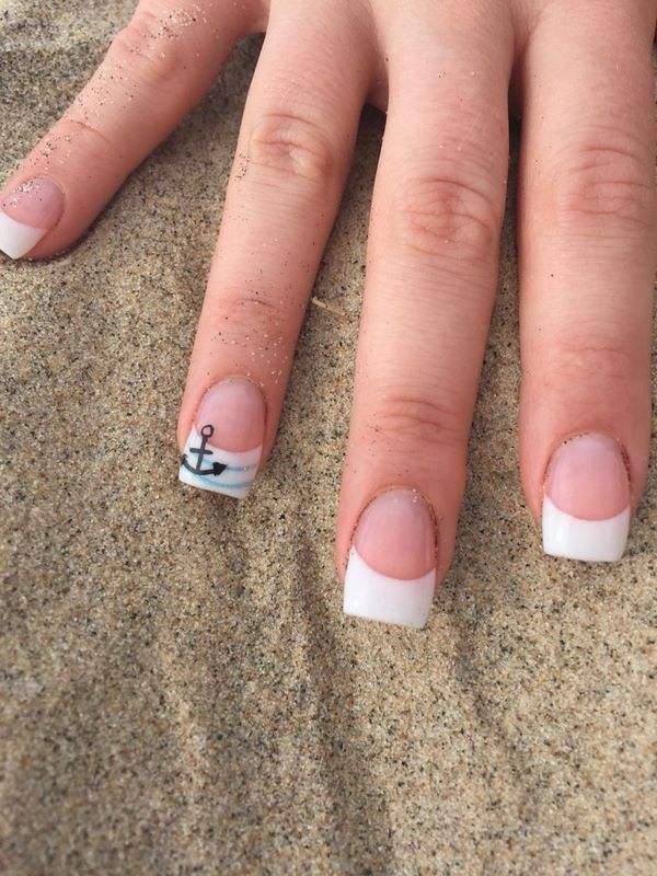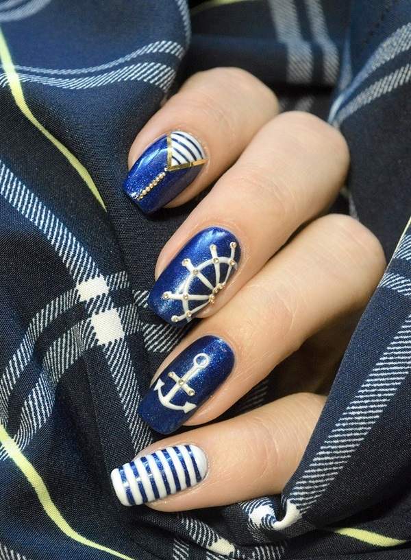 Beach nail art – sea motifs are most often associated with recreation in the summer, so with the arrival of the warm season, beach-style nail designs will be very popular. Blue, white and red are the traditional colors for the beach theme, but you can choose turquoise, green or sandy shades. Small elements – anchor or steering wheel, starfish or shells are the perfect decoration. Do not hesitate to take advantage of drawings – waves, sand, sea stars, sunset, palm trees and any other pattern connected with summer and sea.