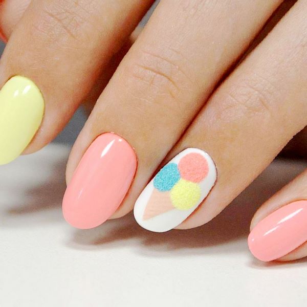 Summer manicure trends feature an oval and almond shape as the most fashionable this season. These shapes are ideal for short and medium long nails and you can have the most incredible interpretations of seasonal decor – from nautical nail art to fruits and flowers.