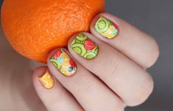 Fruit mood is another Nails summer 2019. What is a summer without juicy bright fruits? Summer manicure with fruit features numerous ideas that can be implemented on the nails. The most popular fruits are orange, kiwi, pineapple, cherries, strawberries, bananas, grapes, and watermelon. Fruit nail art looks unusually stylish and bright. The juicy colors in combination with the texture of fruits will make your hands look cute and playful. You can use ready-made templates or draw fruit patterns with a thin brush or toothpick.