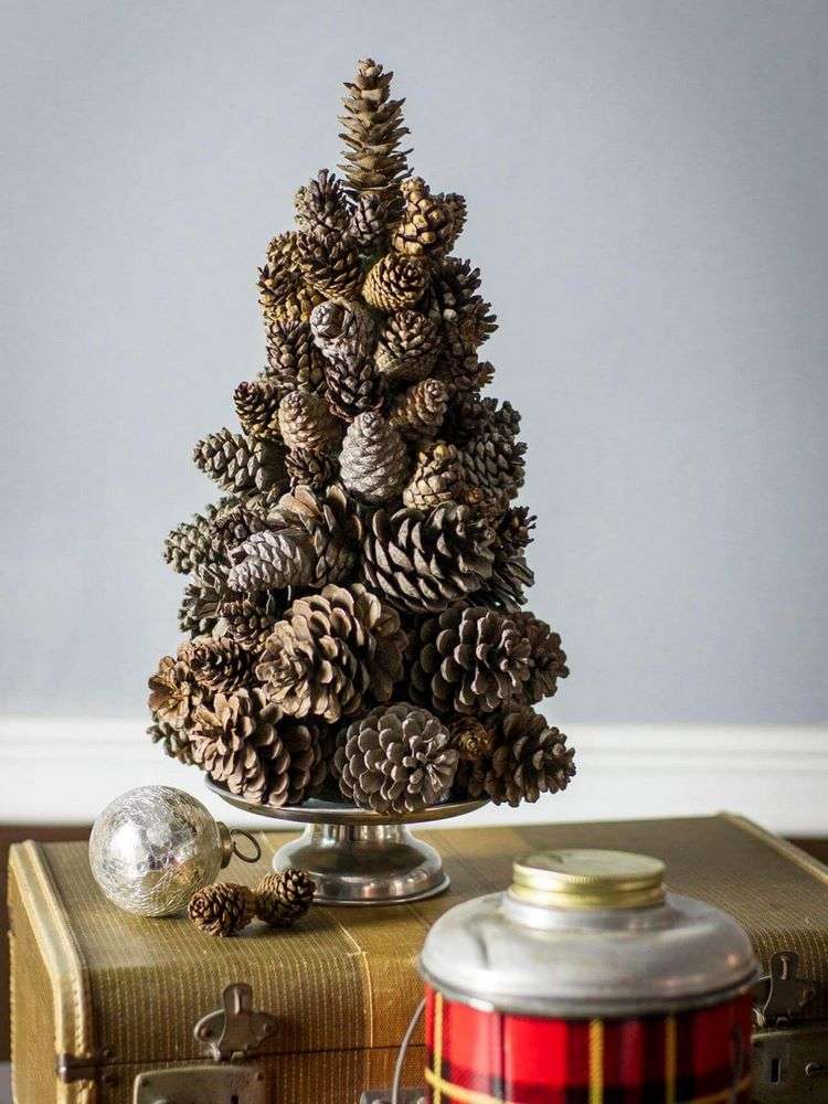 The appearance of pinecones resembles a Christmas tree. You can collect them while having a walk in the forest and craft a beautiful tree with the help of a hot glue gun. Such trees are usually tabletop size and will be a great decoration for a small room or an entryway.