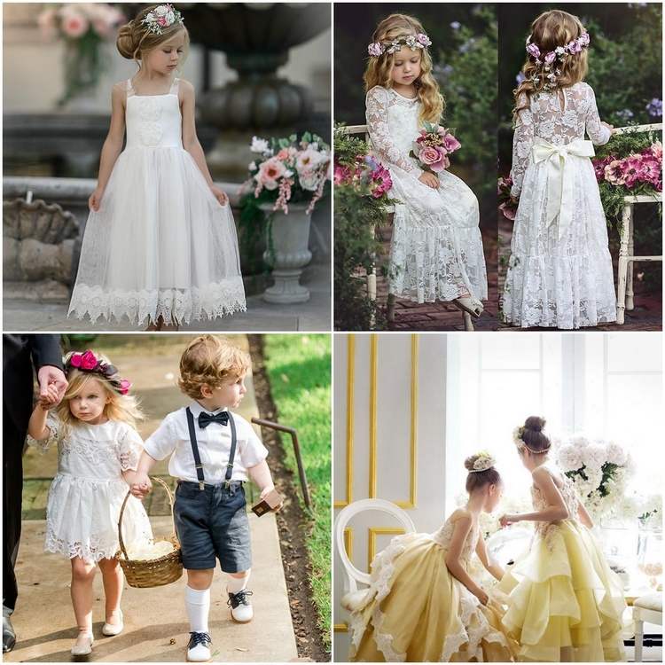Every girl dreams of being a little princess. What could be a better occasion than a wedding to make this dream come true? The dress of a little girl may copy the bride’s dress, of course, if the bride does not mind. If your little princess is going to be a flower girl at the wedding or your boy is going to be a ring bearer, then the outfit should be selected in harmony with the general style of the wedding. Whether it is a princess dress, a dress decorated with lace for a rustic style wedding or a casual boho chic outfit, you need to choose something suitable for the theme.